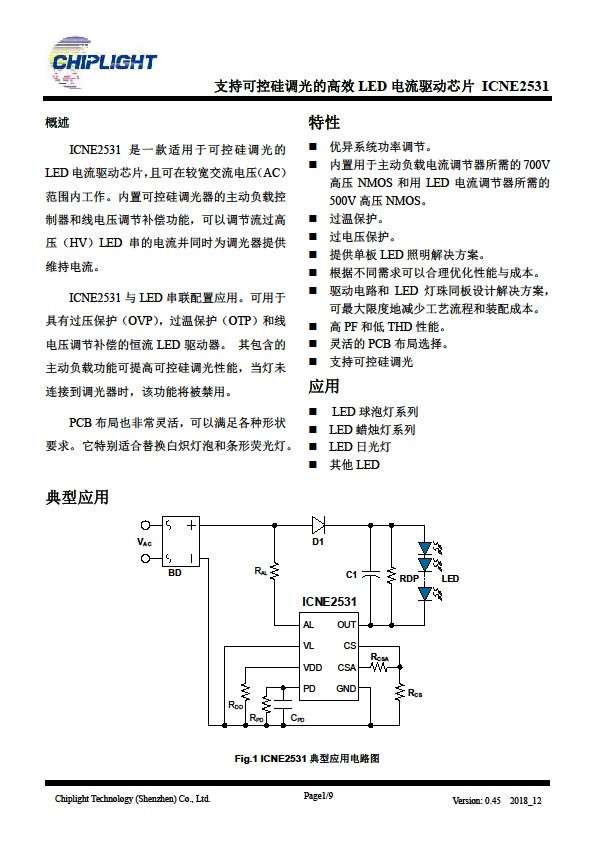 ICNE2531 是一款适用于可控硅调光的线