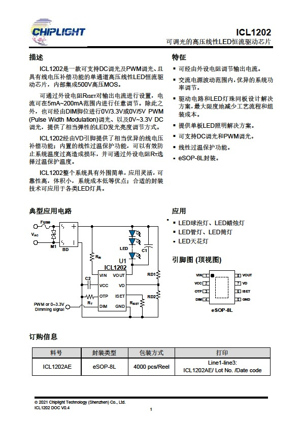 ICL1202B是一款可支持DC调光及PWM调光、