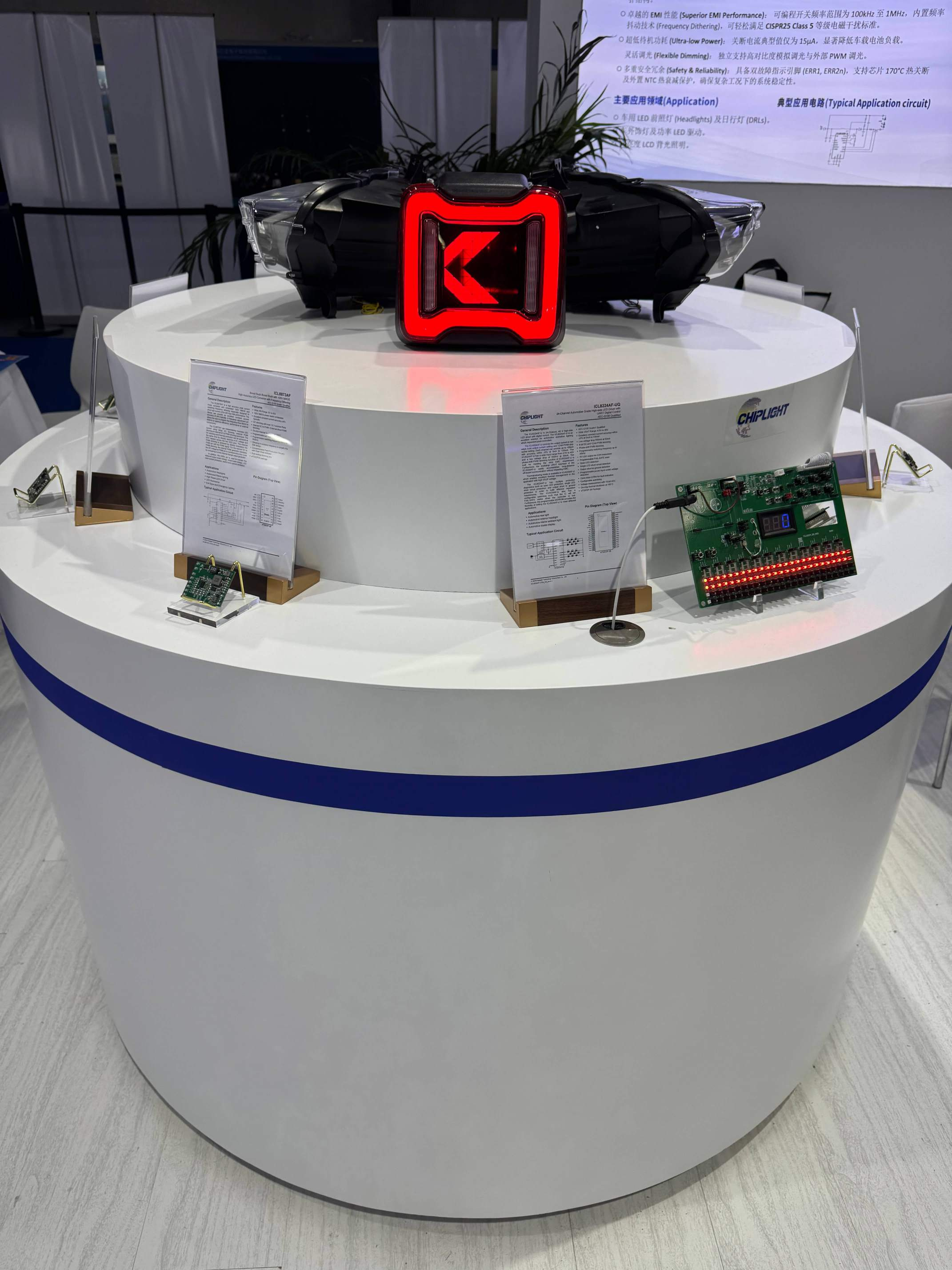 尾灯领域,ITB8888通博带来了更加集成化灵活化的驱动方案iCL8224 ICL8224除了有传统的UART协议外我们本次还展出了集成CANBUS的版本,除此之外我们还增加了NTC,菊链通讯,以及热共享等功能,使得客户使用此产品的灵活性大大加强。