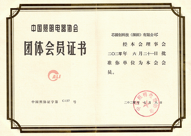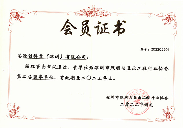 深圳市照明与显示工程行业协会会员证书